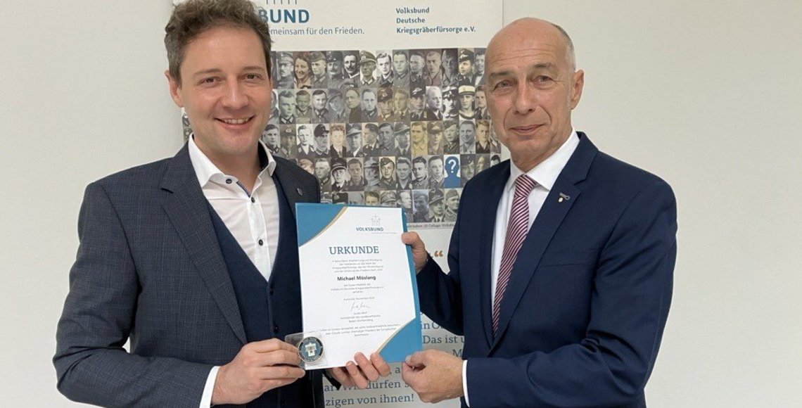 Für seine Verdienste wurde Michael Möslang die Elysee Medaille des Volksbund Deutsche Kriegsgräberfürsorge e.V. verliehen.