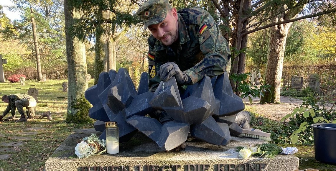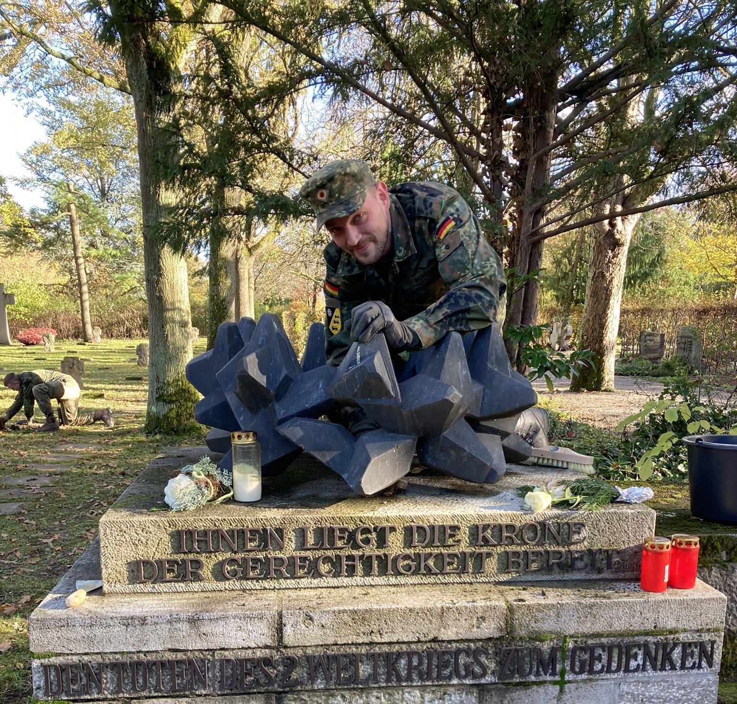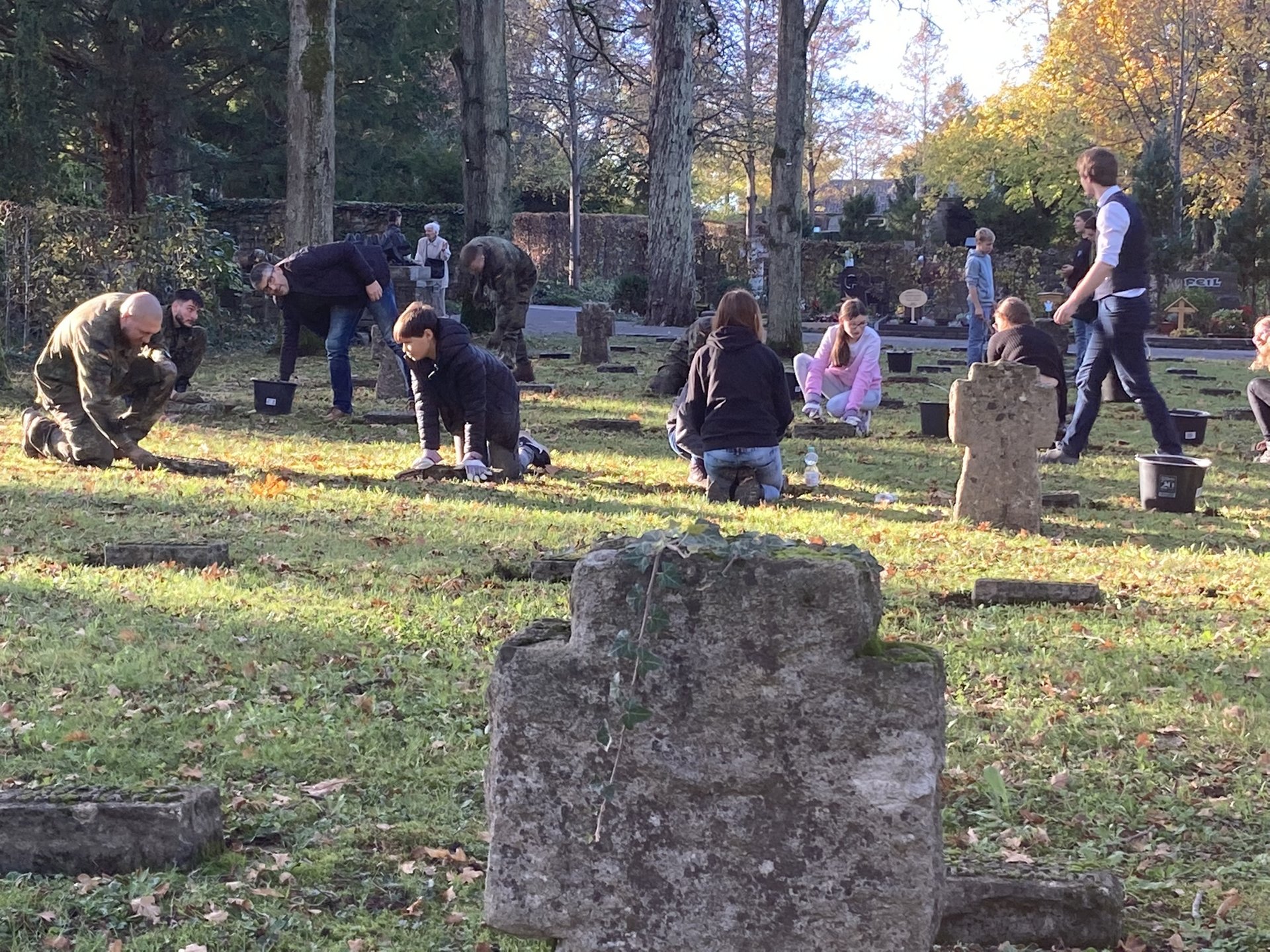 Am 10. November trafen sich die Schülerinnen und Schüler einer 9. Klasse des Bruchsaler Gymnasiums St. Paulusheim, 4 Mitglieder der Reservistenkameradschaft Bruchsal wie auch 6 Bundeswehrangehörige des Standorts Bruchsal, um gemeinsam Kriegsgräber des 2. Weltkriegs zu reinigen. Diese Aktion fand zusammen mit dem Volksbund statt, sehr engagiert unterstützt durch das Friedhofsamt der Stadt Bruchsal.