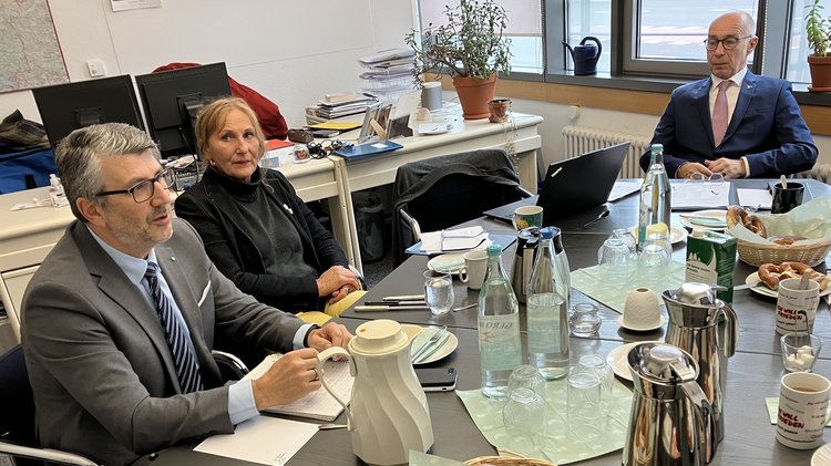 Karlsruhe, 26.11.2024 Heute fand die erste Sitzung des neu gewählten Vorstandes des Bezirksverbandes Nordbaden unter Leitung des neuen Vorsitzenden Dr. M. Michel in der Geschäftsstelle im Röser Medienhaus statt. Michel dankte den bisherigen und neuen Mitgliedern des Vorstandes für ihre Mitarbeit. Auch der Landesgeschäftsführer des Volksbund in Baden-Württemberg Oliver Wasem dankte für das ehrenamtliche Engagement und berichtete u.a. über die Entwicklungen des Volksbundes auf Bundesebene. https://nordbaden.volksbund.de/aktuell/nachrichten/detailseite/vorstand-des-volksbundes-in-nordbaden-neu-gewaehlt