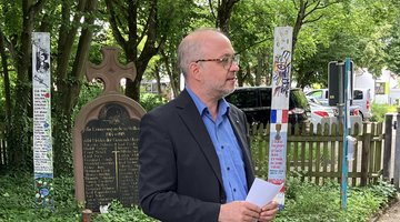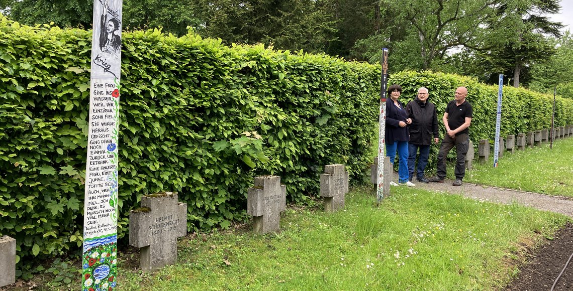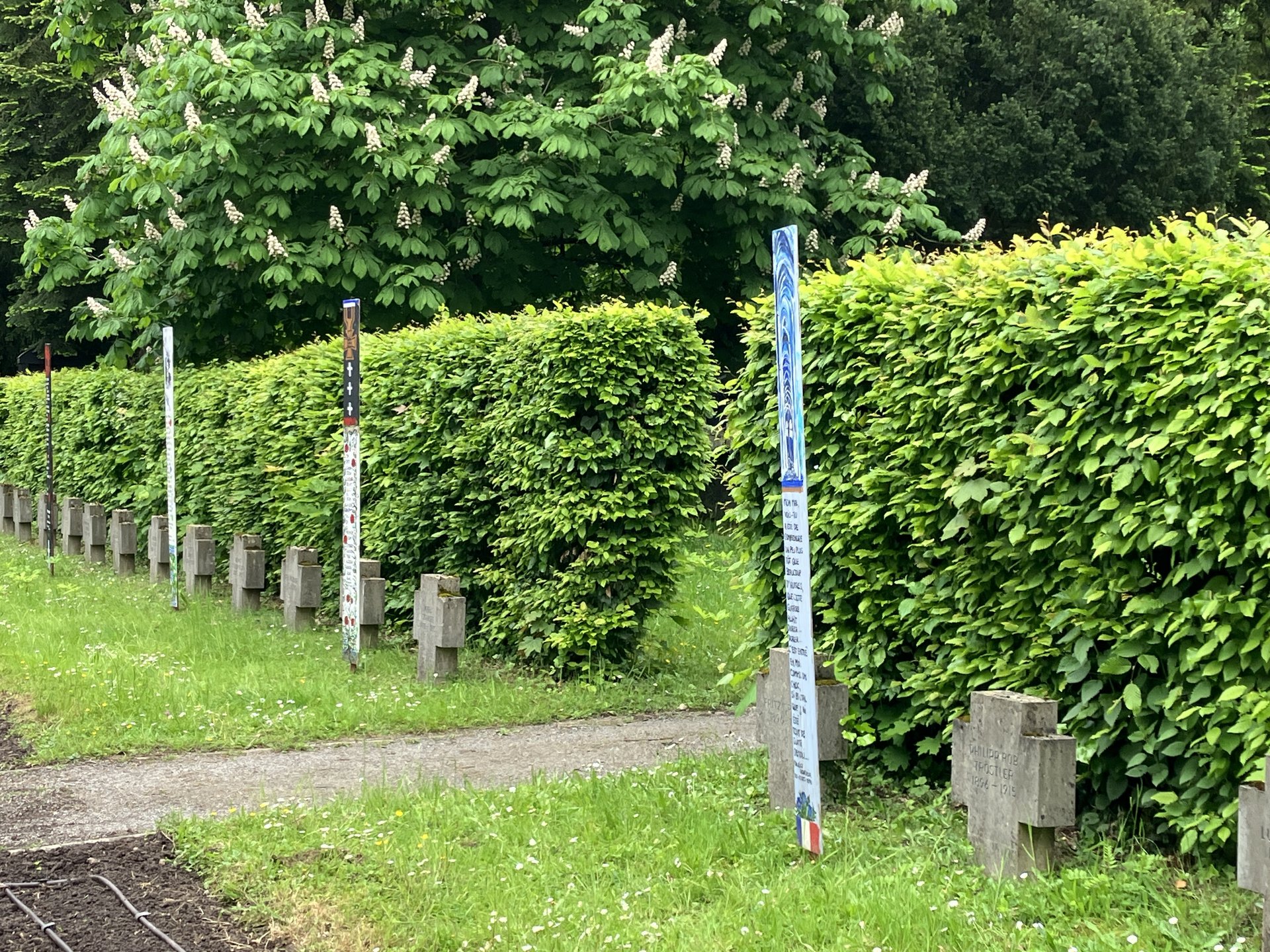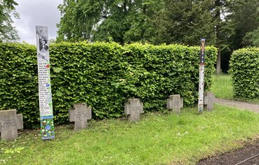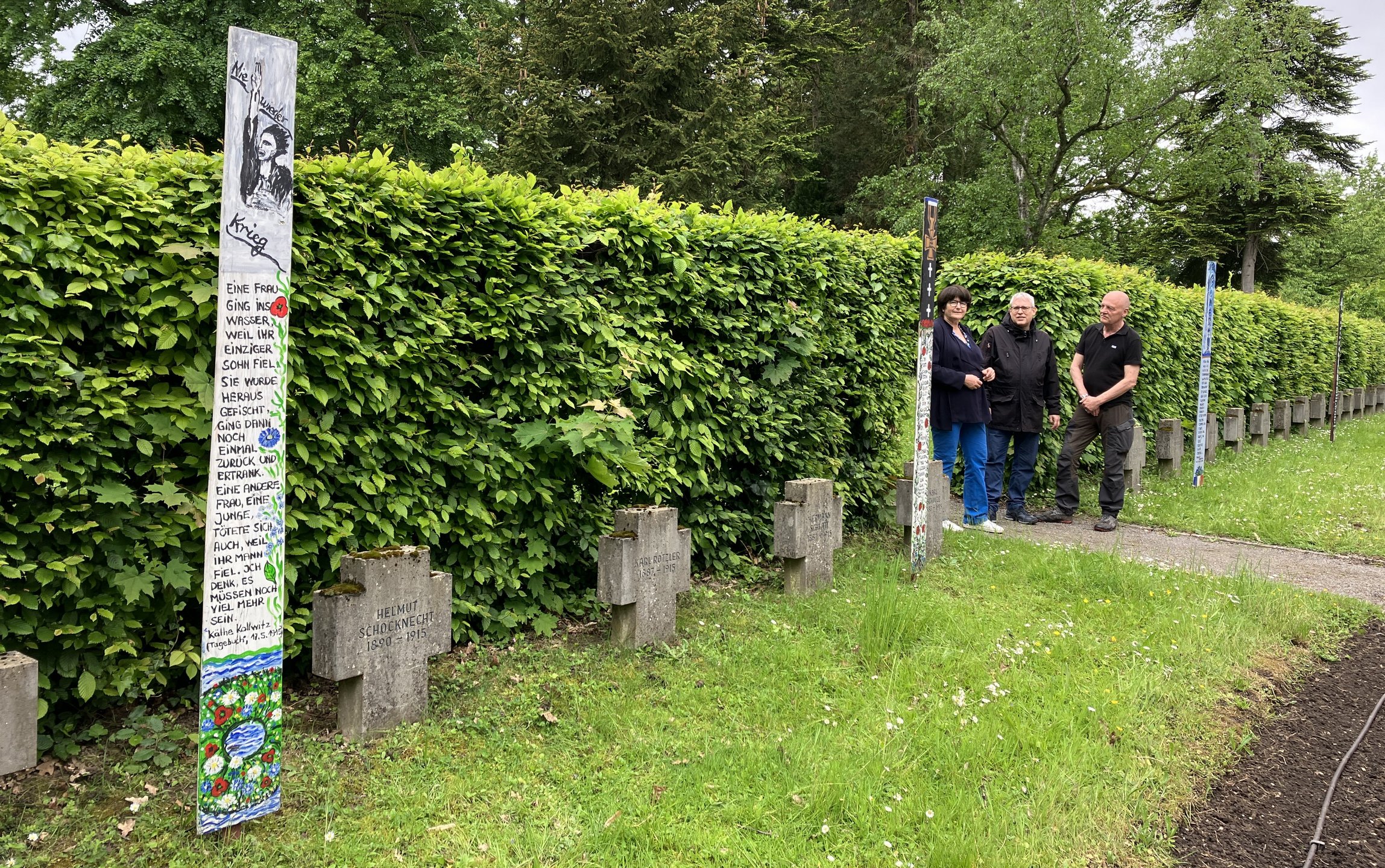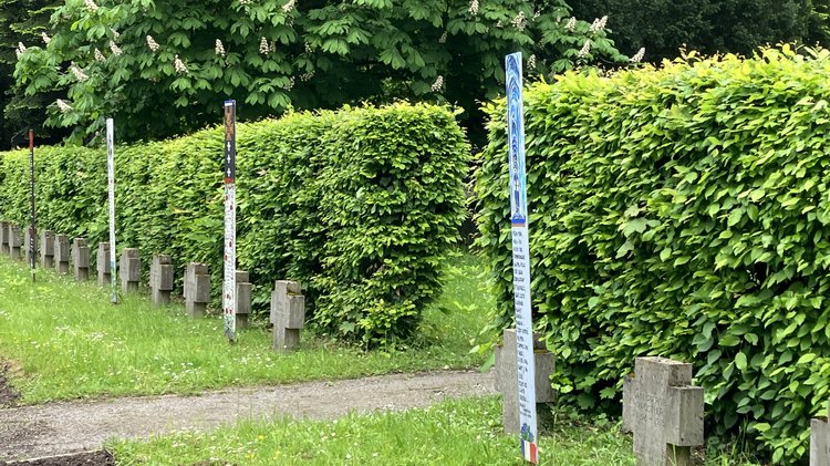 Die Installation von Bali Tollak ist bei den Kriegsgräbern auf dem Bruchsaler Friedhof bis 6. Juni 2024 zu sehen.